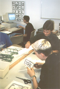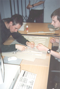 gelegten Plastplatte. Für die Schneide- und Montagearbeiten der Tafeln