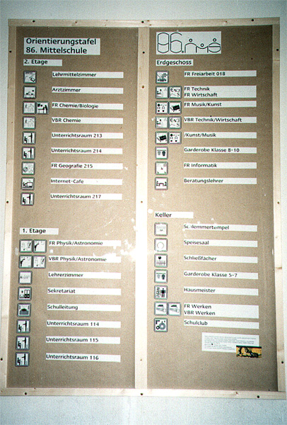 jeweiligen Piktogrammen kam noch der Name und die Nummer des Raumes. Auch
