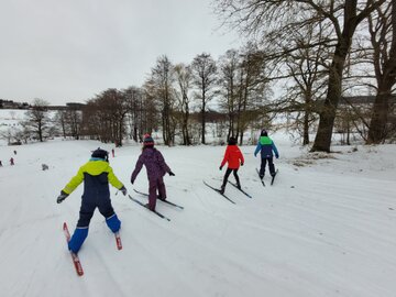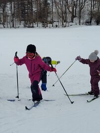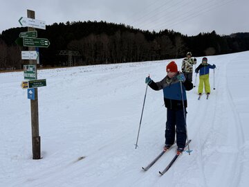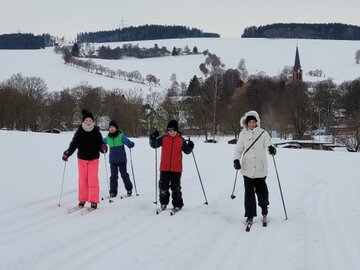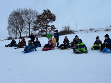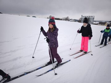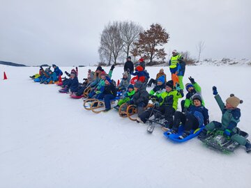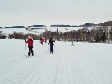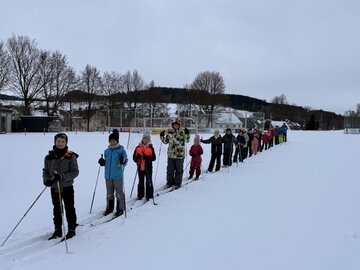Die Kinder entschieden sich entweder für Skilanglauf oder für´s Schlittenfahren. Nach einem gemeinsamen Frühstück in der Schule starteten Schüler und Lehrer gemeinsam in Richtung Sportanlage Dorfchemnitz. Bei besten Loipenbedingungen starteten rund 40 Kinder auf Langlaufski ihre Runde. An dieser Stelle vielen Dank an den Dorfchemnitzer Sportverein Abteilung Skilanglauf! Herr Bach hat unserer Schule eine hervorragende Loipe und extra eine kleine Anfängerrunde vorbereitet. So konnten die Langlauf-Profis in Richtung Skihütte Dorfchemnitz starten, während Kinder, die zum ersten Mal auf Skiern standen, sich weiter im Tal ausprobieren konnten. Gegenüber auf dem Rodelhang war aber auch viel los. Immer wieder sausten die Kinder allein oder zu zweit auf ihren Schlitten den Hang hinunter. Es wurde Schneeballschlacht gemacht, Schneemänner gebaut und auch der ein oder andere Lehrer wurde auf dem Hang rodelnd gesichtet.