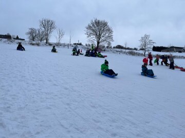 Nach mehreren Stunden im Schnee liefen alle gemeinsam zurück in die Schule, wo bereits ein warmer Tee für alle wartete. Das war ein toller Tag!(Karl Meyer)