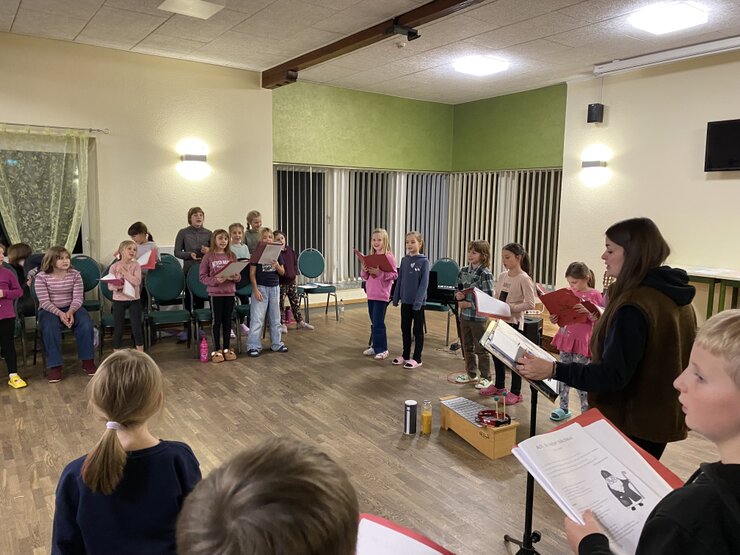 Hier probten die Chor- und Theaterkinder intensiv für die Weihnachtsaufführung. Natürlich gab es zwischen den anstrengenden Proben auch Pausen, in den gebastelt oder gespielt wurde.
