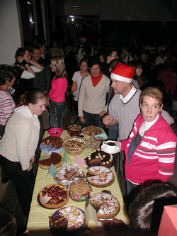 Die Waffelbäckerei und die Schokoäpfel waren besonders bei den süßen "Schleckermäulchen" gefragt. Wer Appetit auf etwas Herzhaftes hatte, erstand bei unserer Schülerfirma "Schlemmertempel" einen Toast oder Wiener Würstchen.