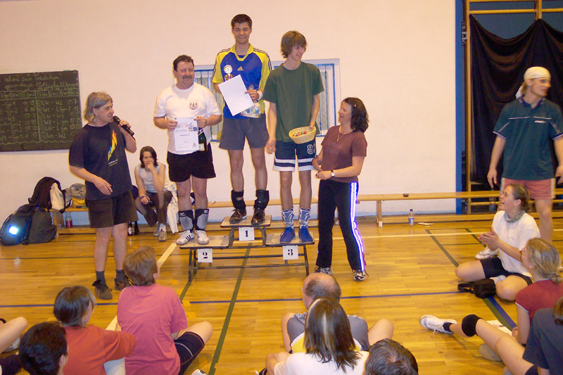 Stimmungsvoll ging es auch beim abschließenden Volleyballturnier am Donnerstag Abend zu. Umrahmt von Musik und dem Stand des Schlemmertempels kämpften 8 Mannschaften (Schüler und Lehrer der MSW und vom Gymnasium, sowie eine Mannschaft ehemaliger Schüler) um den Sieg. Wie auch im vergangenem Jahr konnten am Ende unsere "Ehemaligen" den Pokal in Empfang nehmen. Den zweiten Platz erreichten unsere Lehrer.