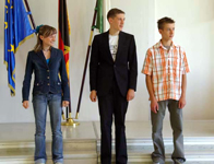 Endlich Klassenstufe 9: "Den 3. Platz belegt Markus Schmidt von der Mittelschule Weixdorf" hieß es und Markus nahm aus der Hand des Kultusministers, Steffen Flath, seinen Preis entgegen. Wir gratulieren Markus zu diesem großartigen Erfolg und wünschen ihm auch weiterhin Freude beim Algorithmieren, Strukturieren, Programmieren, ... Vielen Dank an dieser Stelle auch unserem Patenbetrieb Infineon, der schon seit vielen Jahren als Sponsor den Sächsischen Informatikwettbewerb unterstützt.